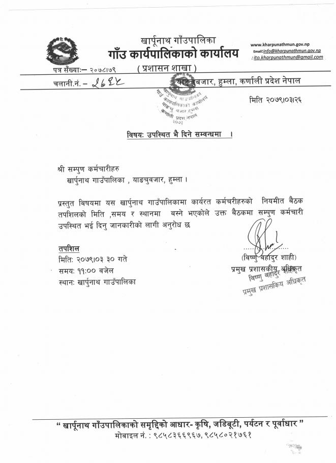 » कर्मचारीको नियमित वैठक सम्वन्धि सुचना