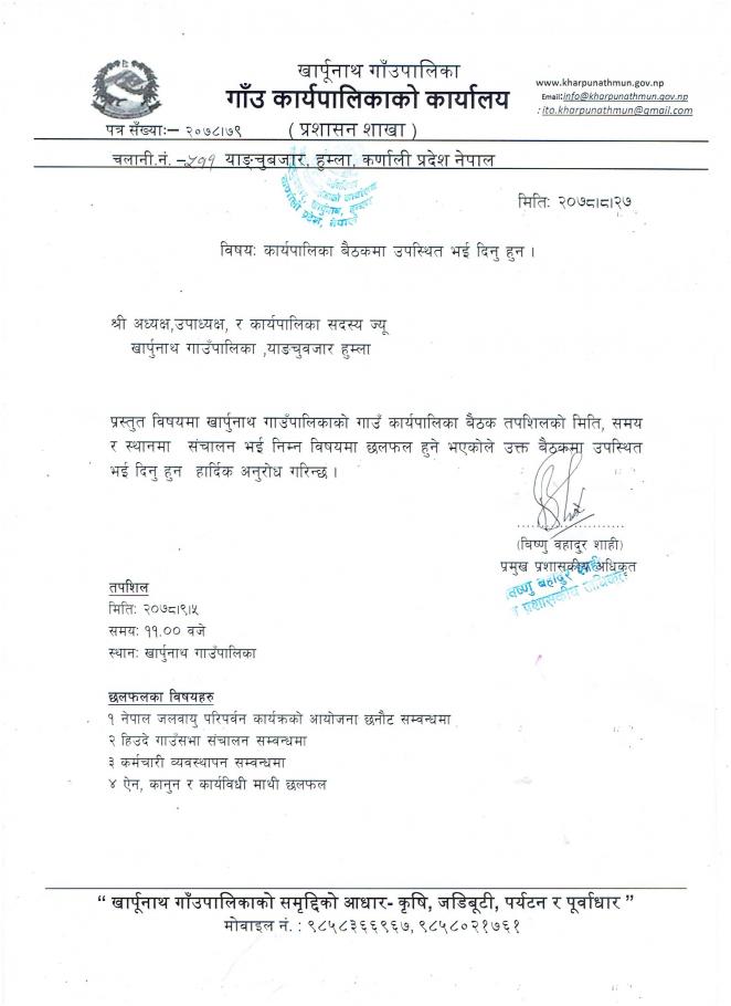 » कार्यपालिका बैठकमा उपस्थिति भई दिन हुन