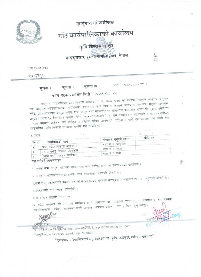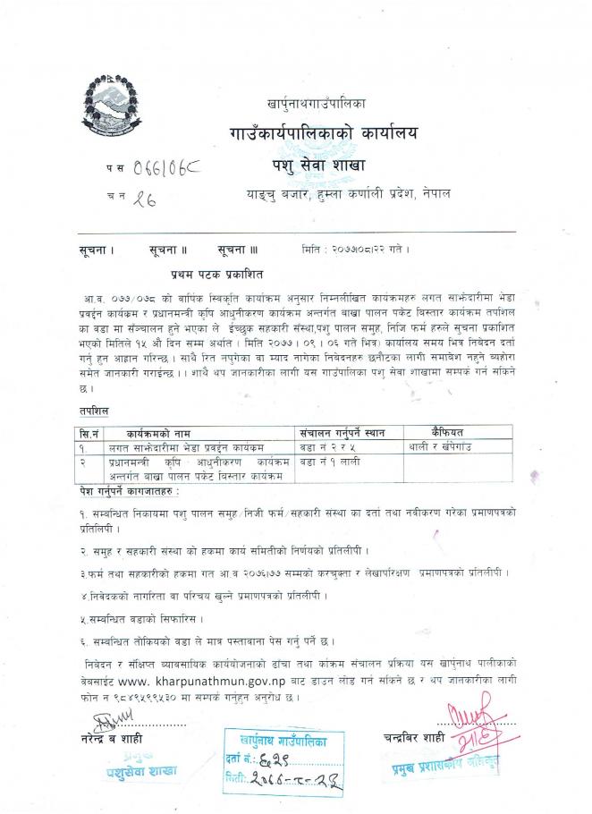 आ.व. २०७७/०७८ को वार्षिक स्विकृति कार्यक्रम अनुसार कृषि तथा पशुको कार्यक्रम सम्बन्धि सूचना |
