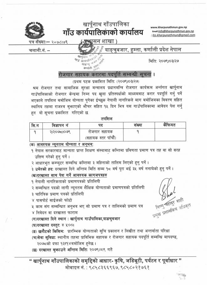 रोजगार सहायक करारमा पदपुर्ति सम्वन्धि सुचना