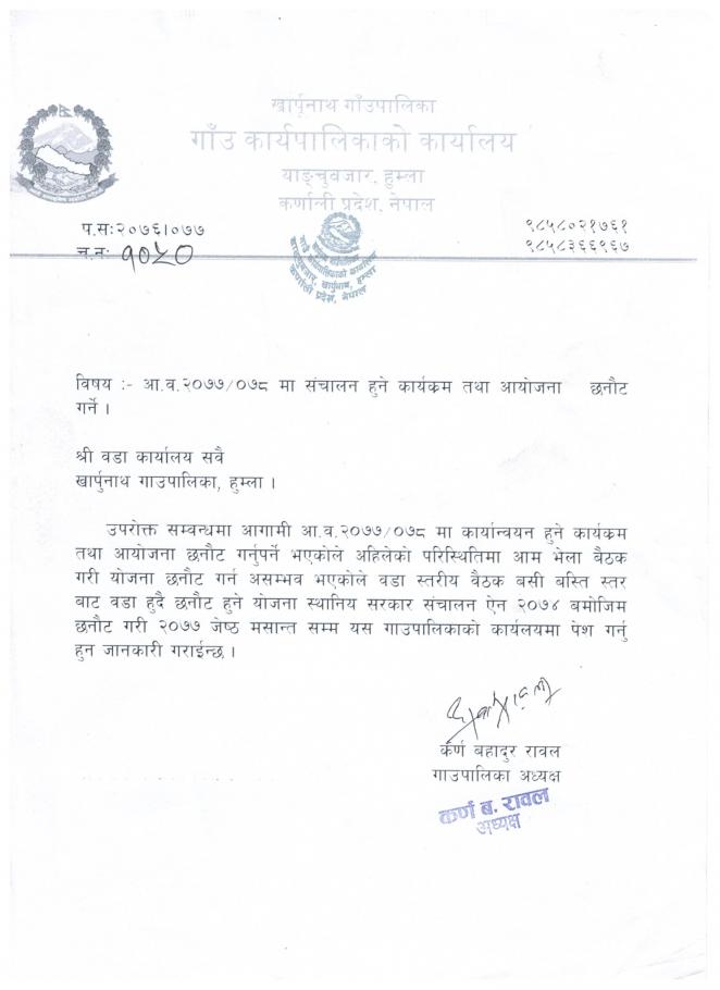 वडा कार्यालय सबै ,आ.व. २०७७।०७८ मा संचालन हुने कार्यक्रम तथा आयोजना छनौट गर्ने