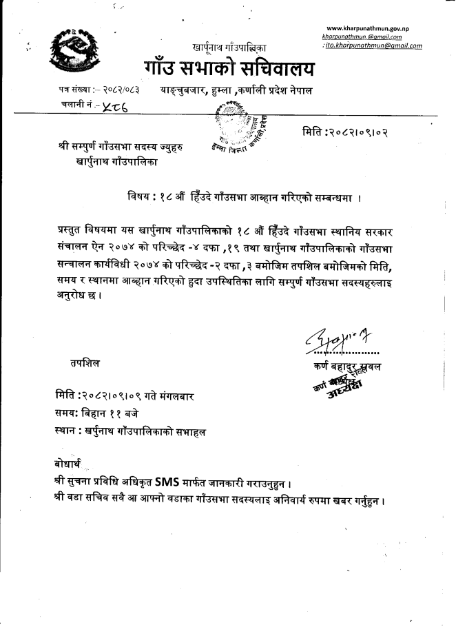 १८ औं हिँउदे गाँउसभा आब्हान गरिएको सम्बन्धमा ।